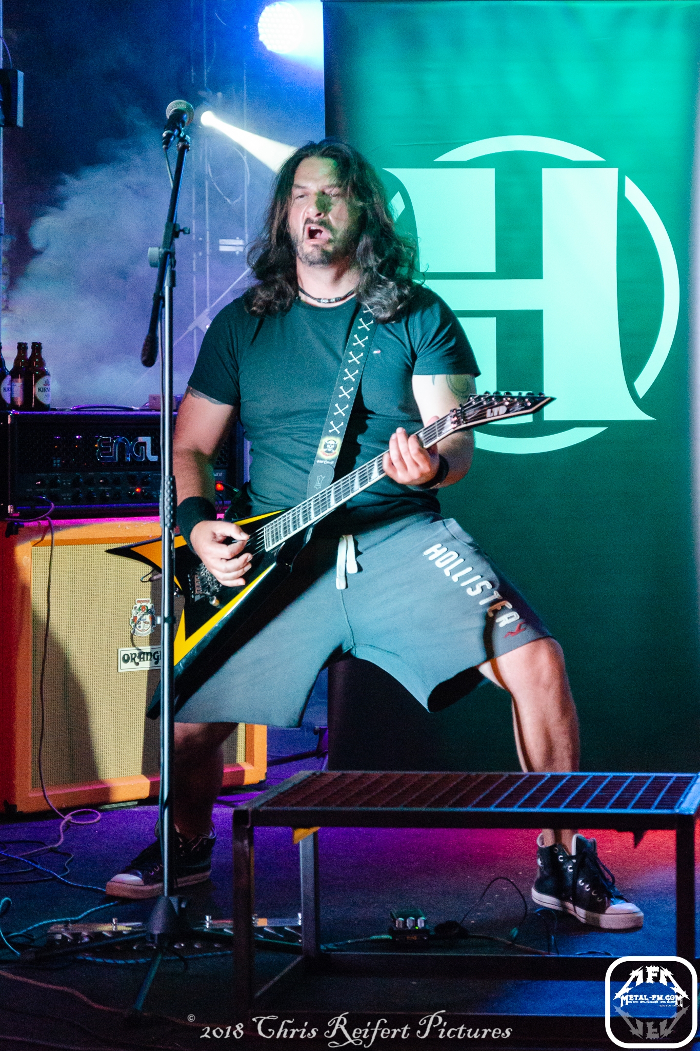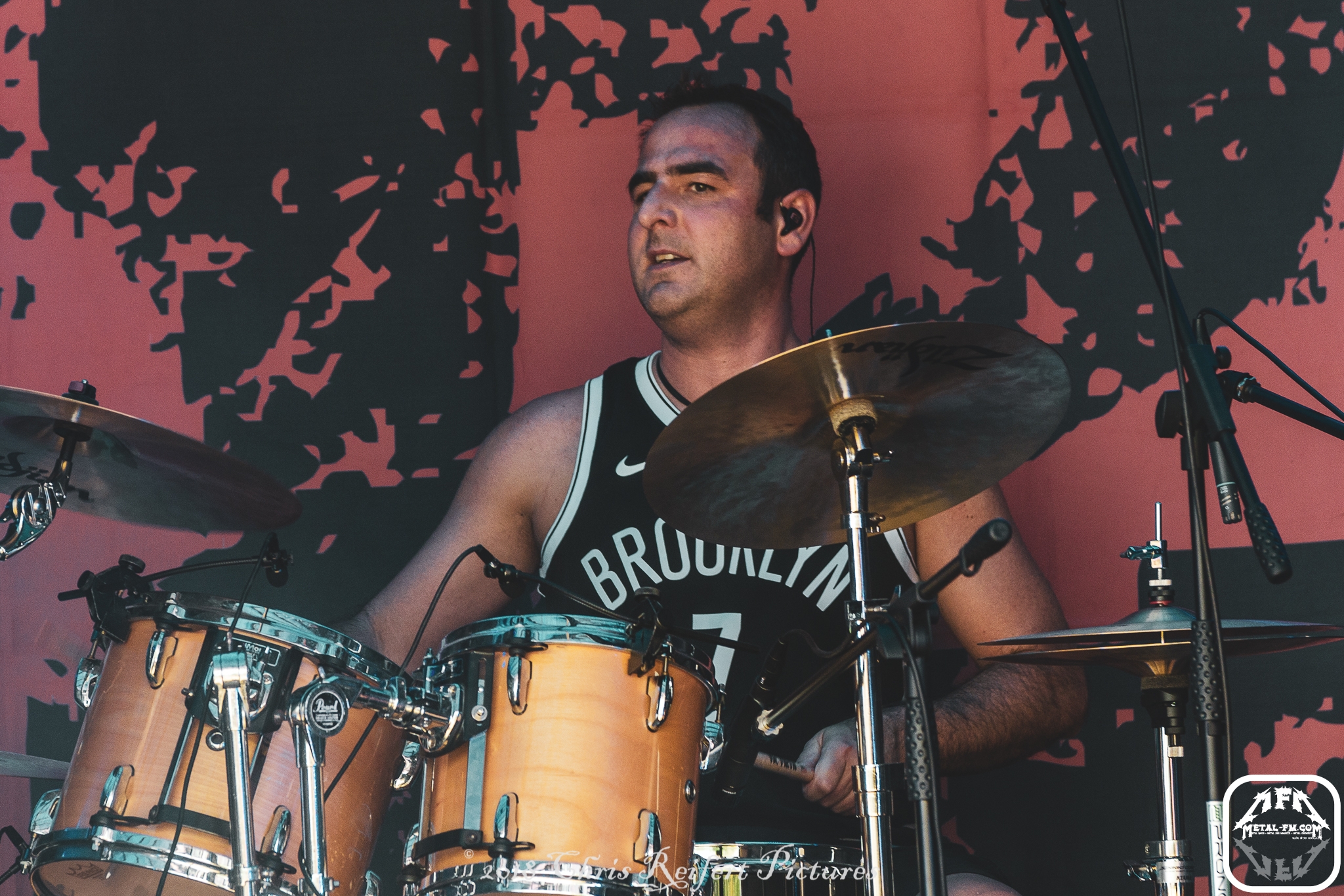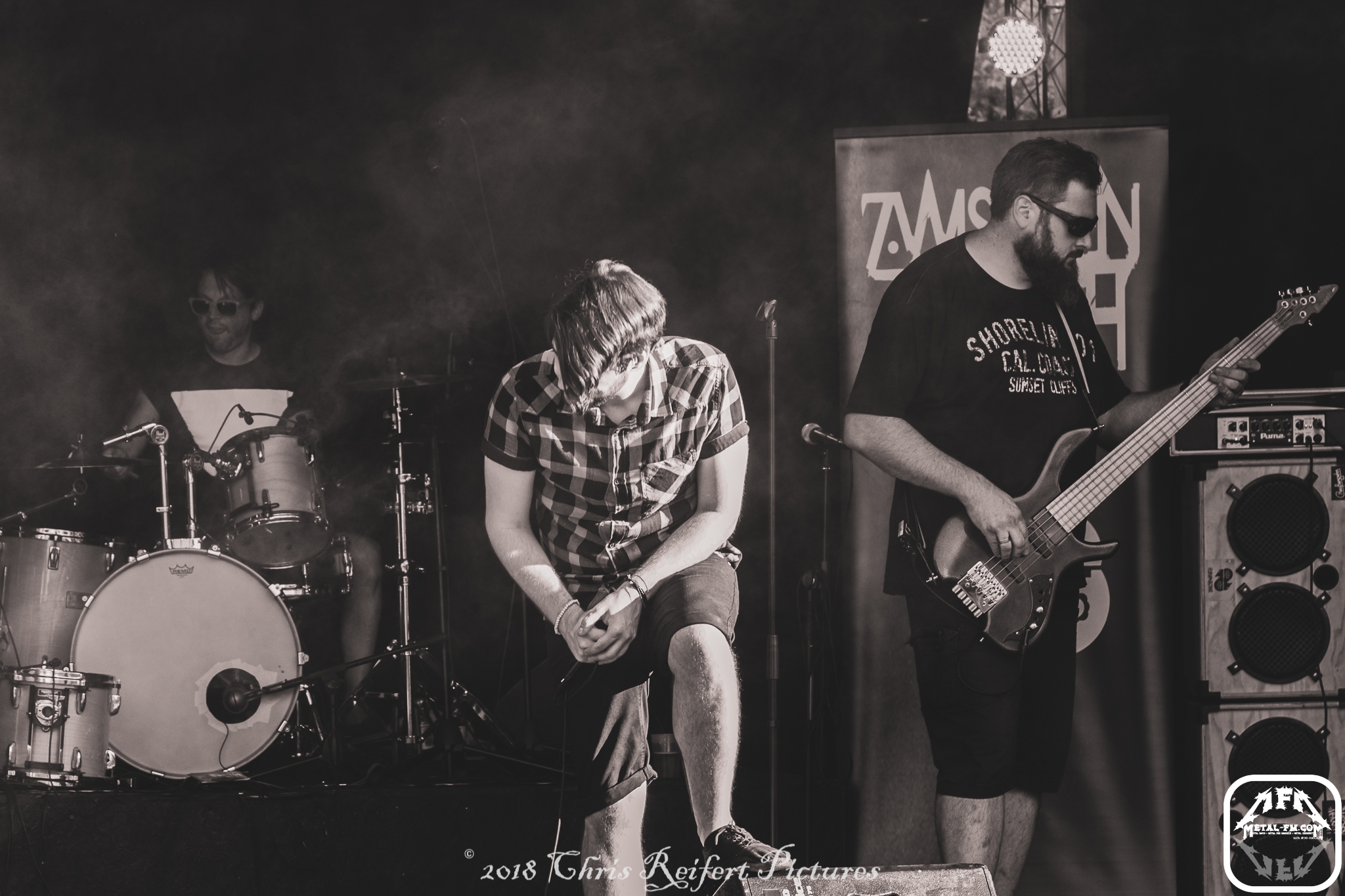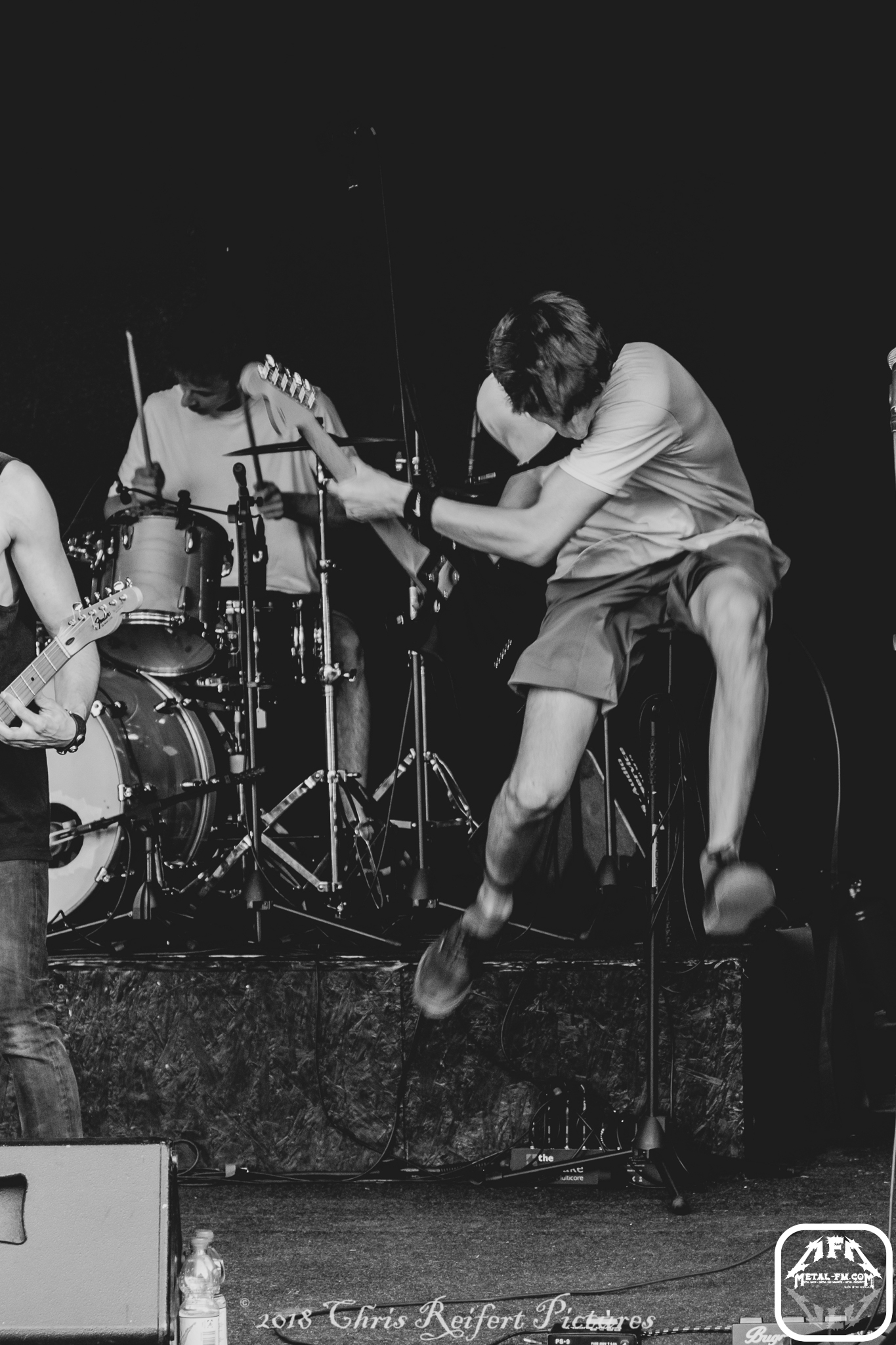 Nachdem sich alle von den Strapazen des Vortages erholt hatten, folgte nun der zweite Teil dieses kleinen und gemütlichen Festivals. Es begannen „Pushseven 12“ um Sänger und Gitarrist „Roman Scherer“ aus dem Rhein-Main-Gebiet. Die sich langsam einfindenden Besucher fanden schnell gefallen an den Klängen die um ihre Ohren flogen und so konnte die Veranstaltung seinen weiteren Verlauf nehmen. Man merkte relativ schnell, dass die Erholung der Nacht allen anwesenden wieder Kraft gegeben hatte. Im Anschluss betraten „Green Machine“ um Frontman „Chris“ mit ihrem Mix aus Rock´n´Roll, PunkRock und StoneRock die Location und heizten dem Publikum ordentlich, trotz der des Wetter geschuldeten Hitze, ein. So wusste jeder der vier Jungs die Masse zu begeistern. Man merkte schon früh, welch Potenzial in diesem Abend steckte. Auch ließ sich „Zwischenmensch“ nicht lange bitten die Bühne zu betreten. Die Jungs aus dem hessischen Darmstadt rockten aber in aller Routine ihr Programm aus deutschsprachigen Post Hardcore ab, was sich auch in der Performance der vier Musiker zeigte. Als wahrhaft lustige Truppe gesellte sich nun „Andy´s Sister“ auf die Bühne. Mit ihrem bunten Mix aus eigenen und Cover-Songs konnten sie schnell Fuß fassen und auf den bevorstehenden Hauptact vorbereiten. Auch wussten die Jungs ihre gute Laune zu versprühen.