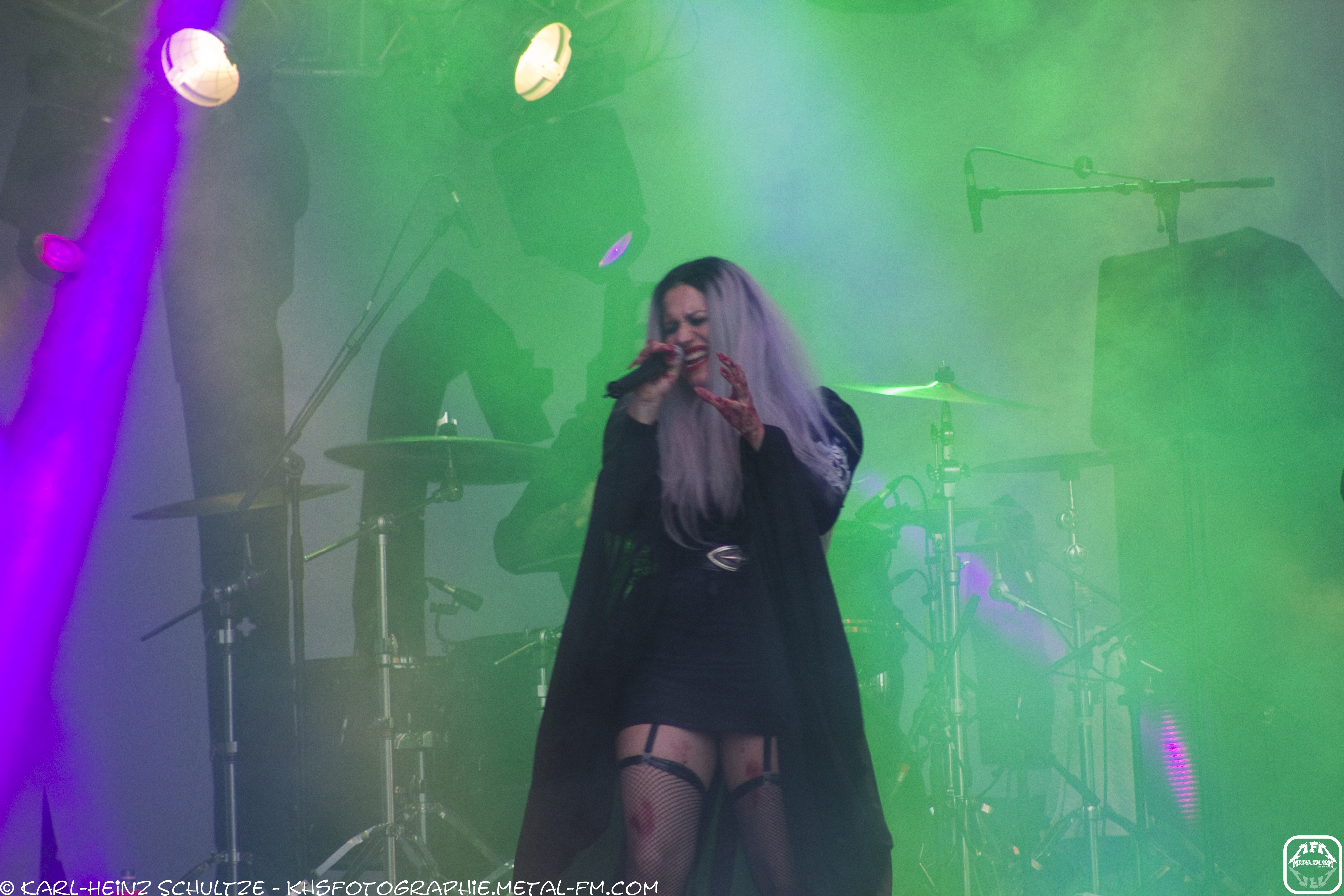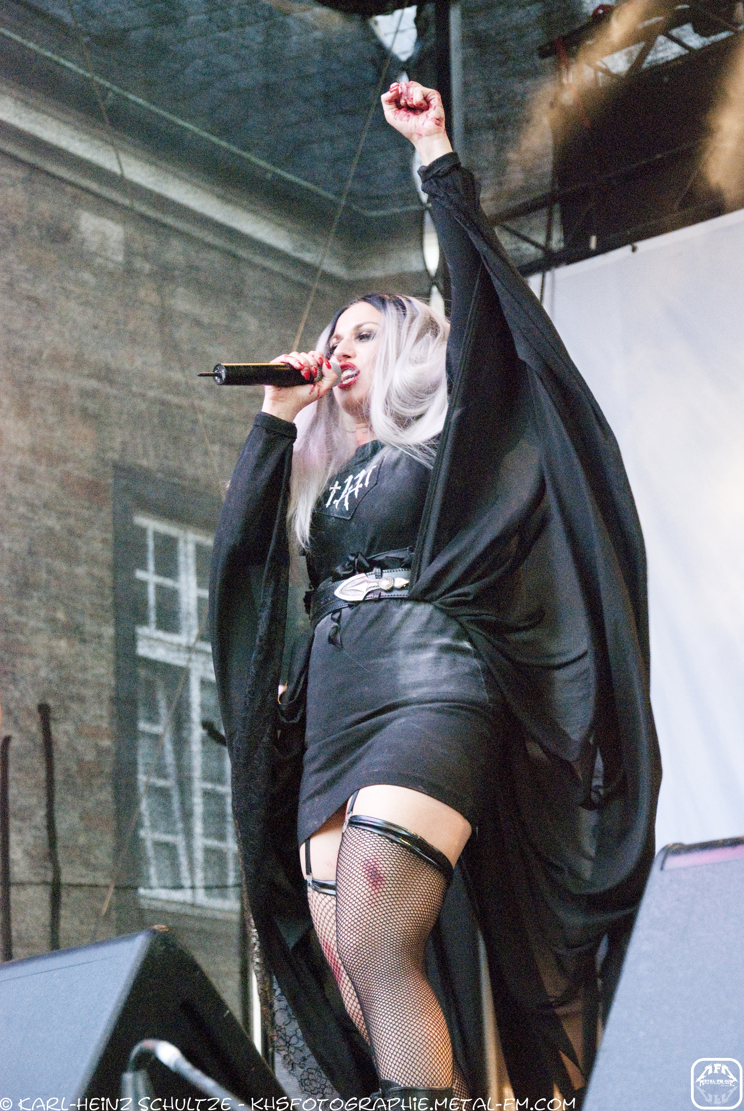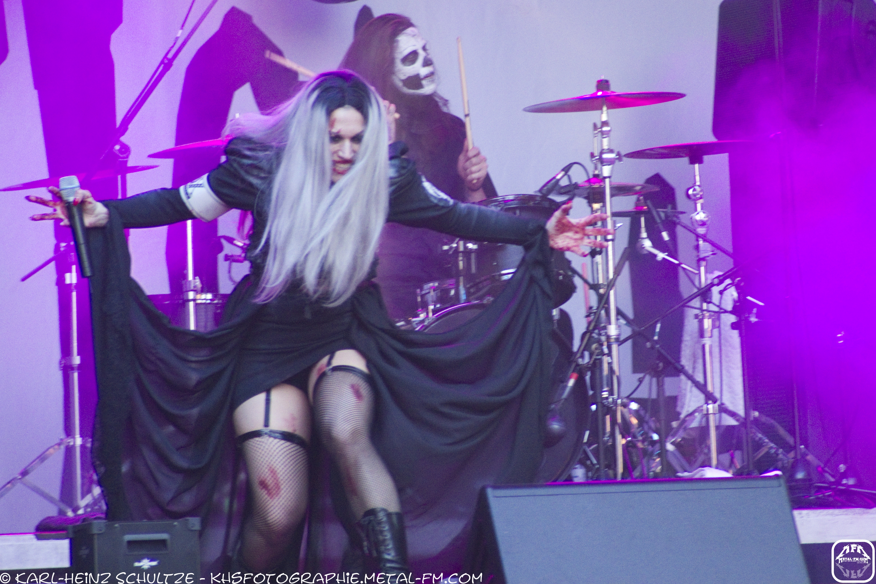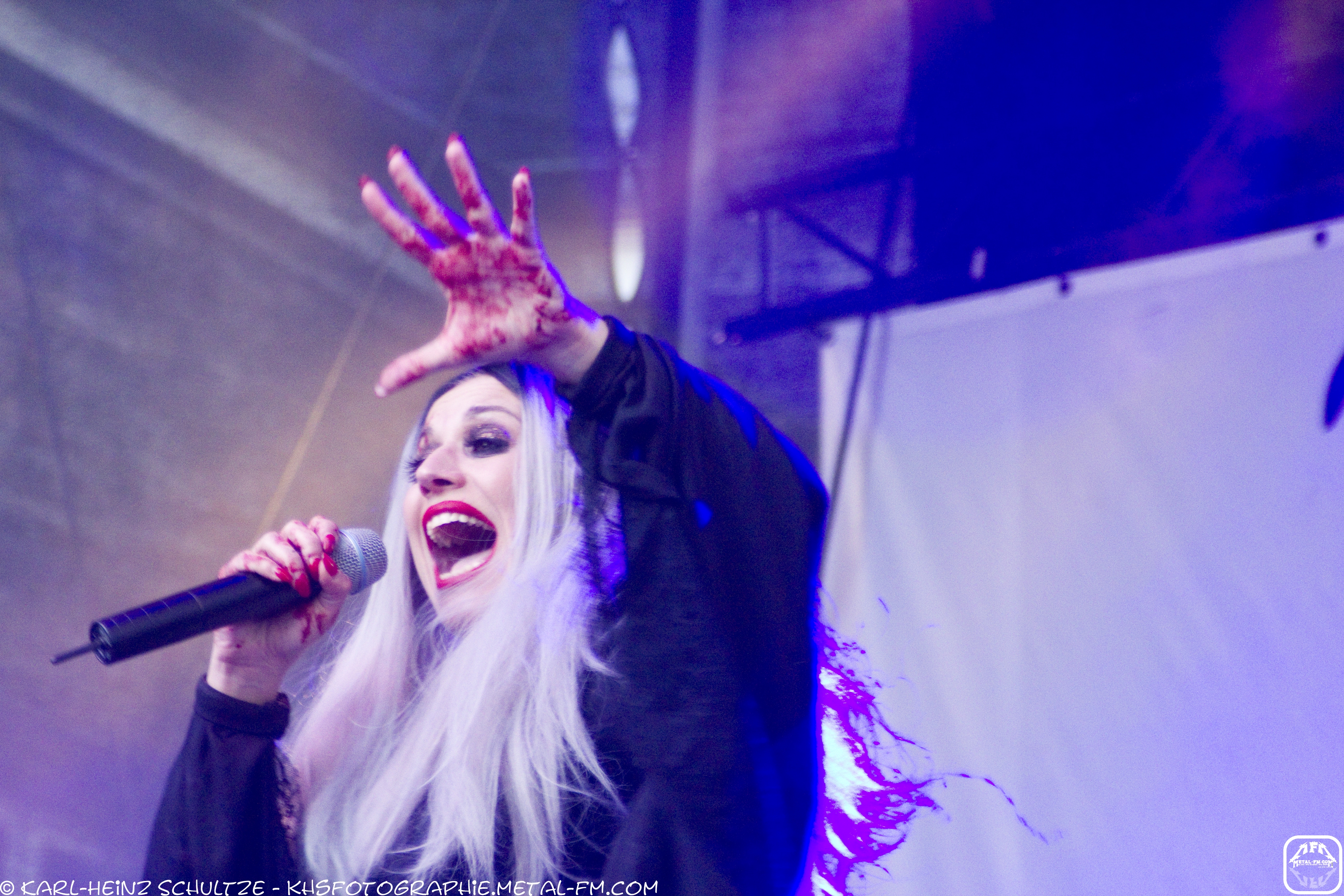 Die Jungs überzeugten nicht nur mit ihrer Musik, sondern auch mit einer sehr ausgefallenen, umfassenden Bühnenshow. Für diese holten sie sogar eine junge Frau auf die Bühne. Generell gilt jedoch, wer kein Blut sehen kann, sollte bei den Jungs nicht in der ersten Reihe stehen. Außerdem ist es auch durchaus möglich, von einem Vampir in den Hals gebissen zu werden. Darauf folgten The Beauty of Germina! Eine sehr tanzbare und denn noch harte Mischung. Einige Songs erinnern ein wenig an Techno Sounds, die natürlich dazu einladen, ein wenig Disco Feeling zu verspüren und auszuleben.