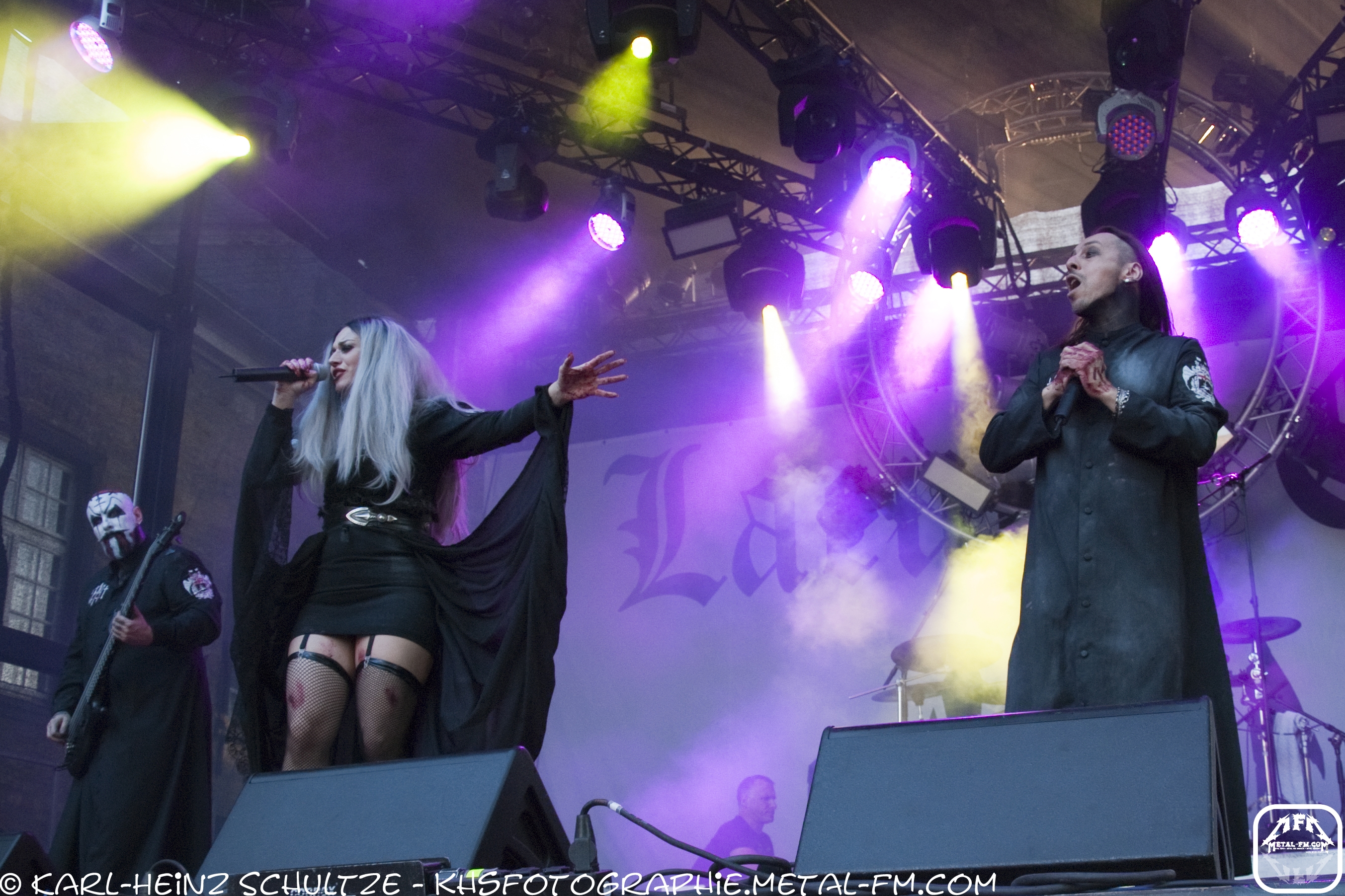 Die Jungs überzeugten nicht nur mit ihrer Musik, sondern auch mit einer sehr ausgefallenen, umfassenden Bühnenshow. Für diese holten sie sogar eine junge Frau auf die Bühne. Generell gilt jedoch, wer kein Blut sehen kann, sollte bei den Jungs nicht in der ersten Reihe stehen. Außerdem ist es auch durchaus möglich, von einem Vampir in den Hals gebissen zu werden. Darauf folgten The Beauty of Germina! Eine sehr tanzbare und denn noch harte Mischung. Einige Songs erinnern ein wenig an Techno Sounds, die natürlich dazu einladen, ein wenig Disco Feeling zu verspüren und auszuleben.