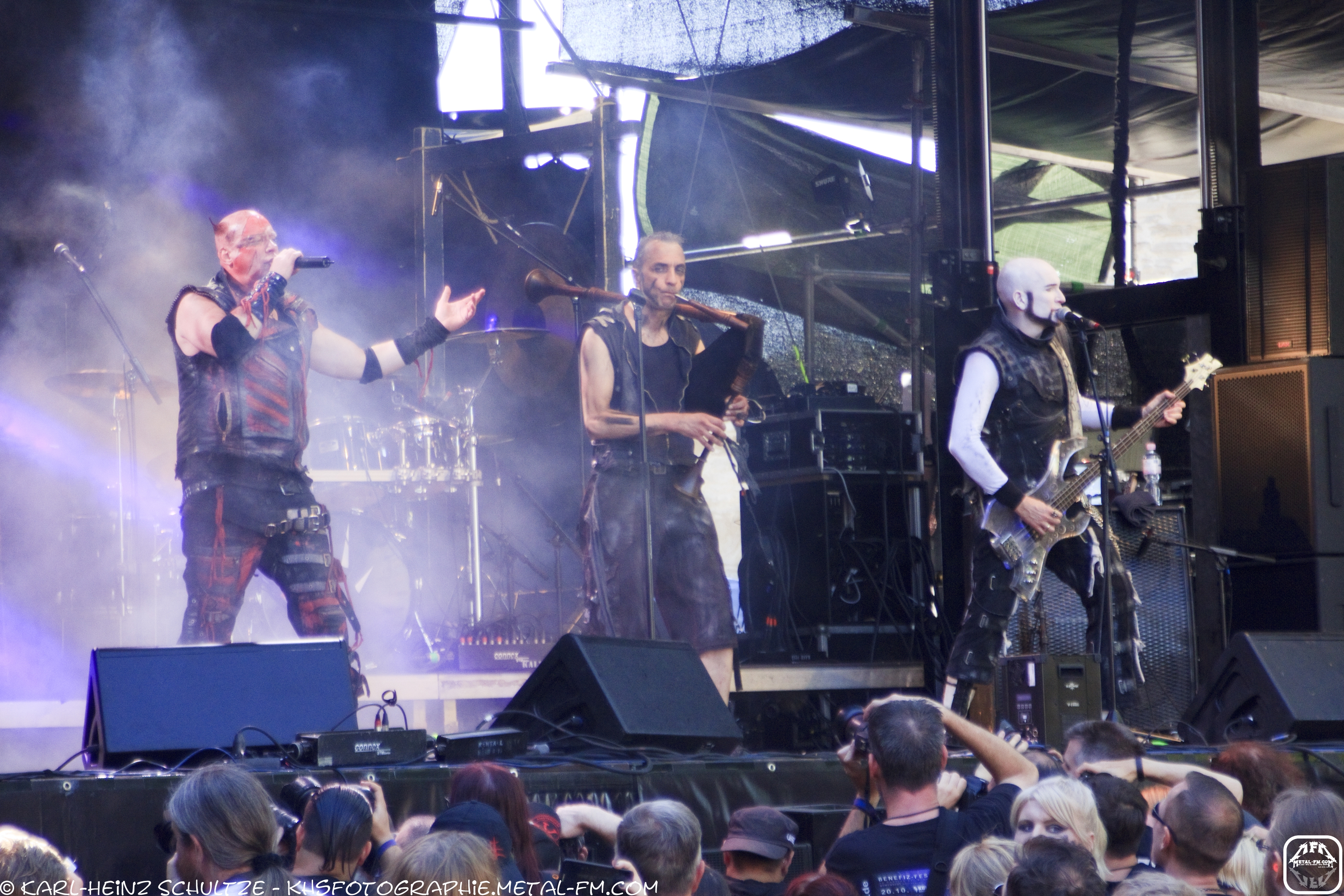 Mit Tanzwut betreten nun eine Szene Größe die Bühne. Die dafür bekannt ist, von 0 auf 100 zu gehen. So war es auch diesmal. Die Stimmung war heiß wie in der Hölle! Kaum ein Song der nicht vom feiernden Publikum mitgesungen werden konnte. Besonders stach auch die Nähe zu ihren Fans heraus.